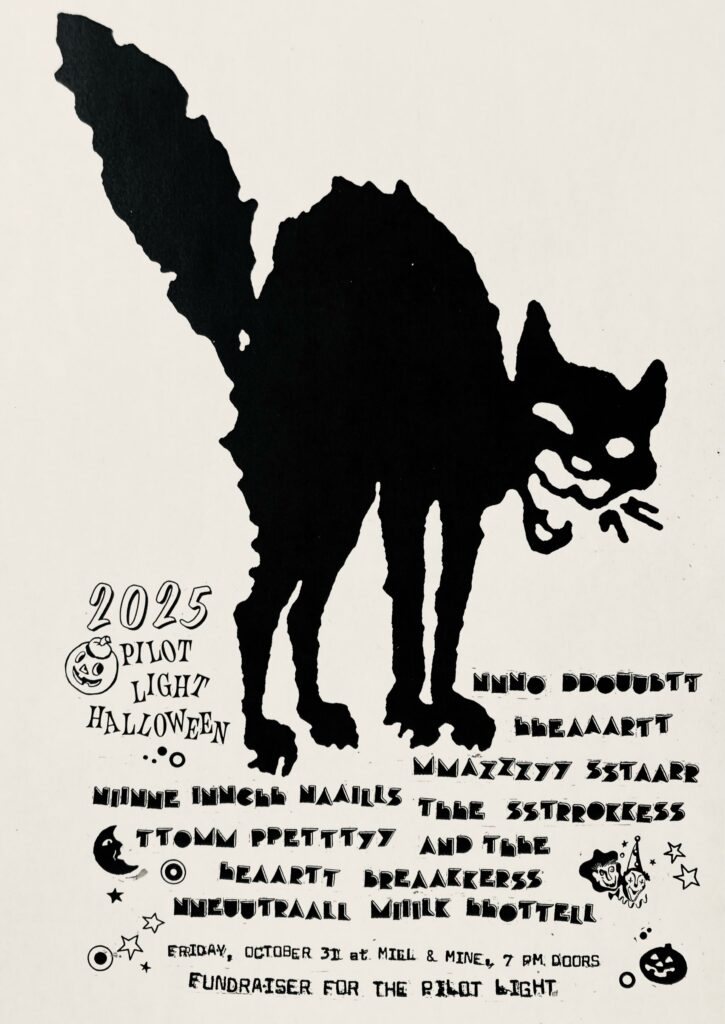 It’s a rock-n-roll masquerade show with some of your favorite Pilot Light regulars putting together bands and dressing up to perform as your favorite stars on an impossible bill. It’s also the only time each year we book cover bands (well, sometimes we do it on April Fools’ Day too), so the emphasis is on bringing the best and most accurate presentation possible.